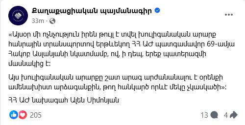 Մայր ու որդի թքողները մինչ օրս չեն արժանացել օրենքի ամենախիստ արձագանքին․ Վահե Սարգսյանի արձագանքը՝ Ալեն Սիմոնյանի գրառմանը